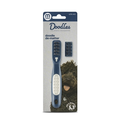 Mikki Der Doodle De-Matter ist das ideale Werkzeug für die Fellpflege Ihres Doodles zu Hause. Wenn Sie Ihr Fell täglich fünf Minuten lang pflegen, beugen Sie Verfilzungen vor und halten Ihr Haustier sauber. Mikki Mit diesem De-Matter von haben Sie alles, was Sie brauchen, um das Fell zu Hause richtig zu pflegen! Hat Ihr Doodle immer noch einige Verfilzungen, die Sie mit Kämmen nicht herausbekommen? Mikki Die De-Matter von damals bietet eine Lösung. Halten Sie das Haar an der Wurzel fest, damit es nicht an der Haut zieht, und kämmen Sie die verknotete Stelle mit kurzen Strichen sanft durch. Bei Verwicklungen, die größer als eine Erbse sind, wenden Sie sich an Ihren Trimmer, anstatt zu versuchen, sie selbst zu entwirren.